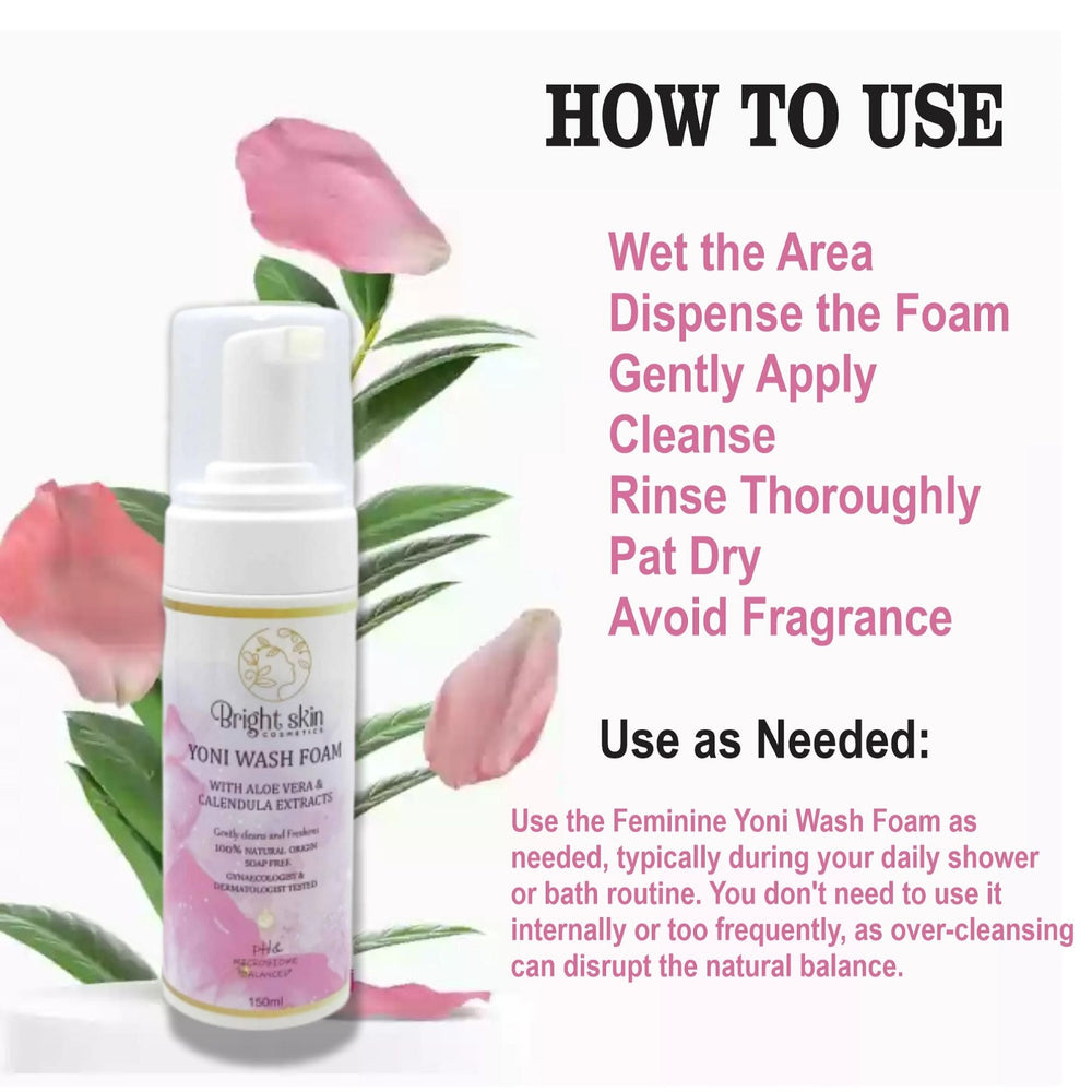 Bright Skin Cosmetics YONI WASH FOAM is a daily cleaning product specifically developed and designed for women.This product can keep the skin at the place where it is used fresh and comfortable. It is rich in calendula and aloe essence, which can moisturize and smooth, beautify the skin, and protect the skin gently with antibacterial and anti-inflammatory effects. It is suitable for daily use