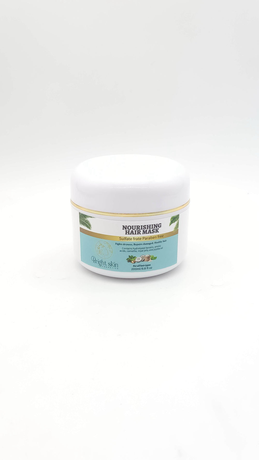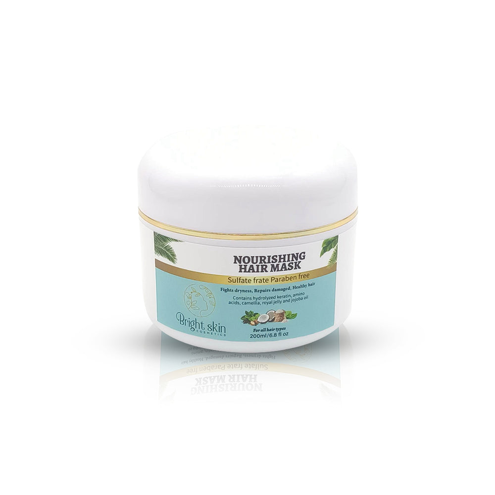 Vår hårmask innehåller hydrolyserat keratin, aminosyror, bidrottninggelé och andra aktiva ingredienser.